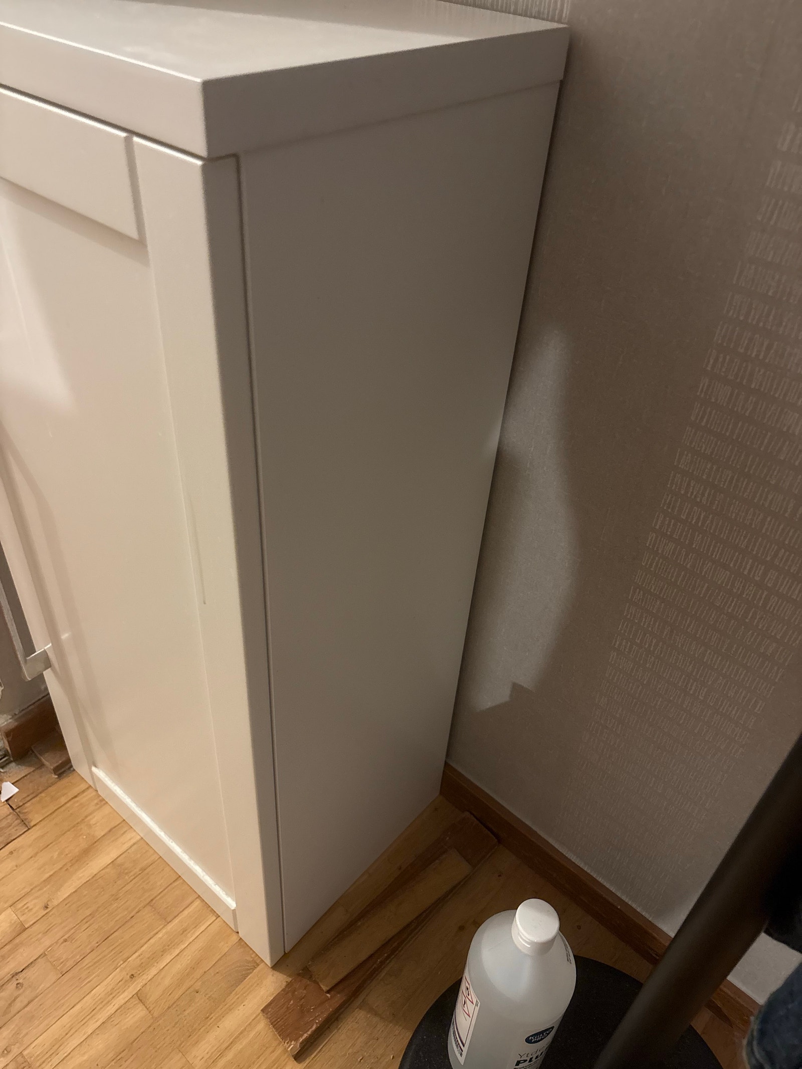 Begagnad vit väggskåp för badrum med praktisk förvaring och två inre hyllor. Skåpet är tillverkat i vitt material och passar perfekt för att organisera badrumsutrymmet med både elegans och funktionalitet. Med måtten 455 mm i bredd, 275 mm i djup och 805 mm i höjd får du en kompakt löösning som tar minimal plats samtidigt som den erbjuder generös lagringskapacitet. Den klassiska designen gör att skåpet passar in i de flesta badrumsstil, från minimalistisk modern till traditionell inredning. Du får en säker, stabil förvaring för toalettartiklar, handdukar och badrumstillbehör. Hemleverans kan arrangeras inom 24 timmar i Göteborgområdet. Betala enkelt och säkert via Swish eller kontant vid leverans. Detta är ett utmärkt val för den som söker en begagnad badrumsöösning som både sparar pengar och är miljövänlig genom att ge ett redan existerande möbel ett nytt hem.