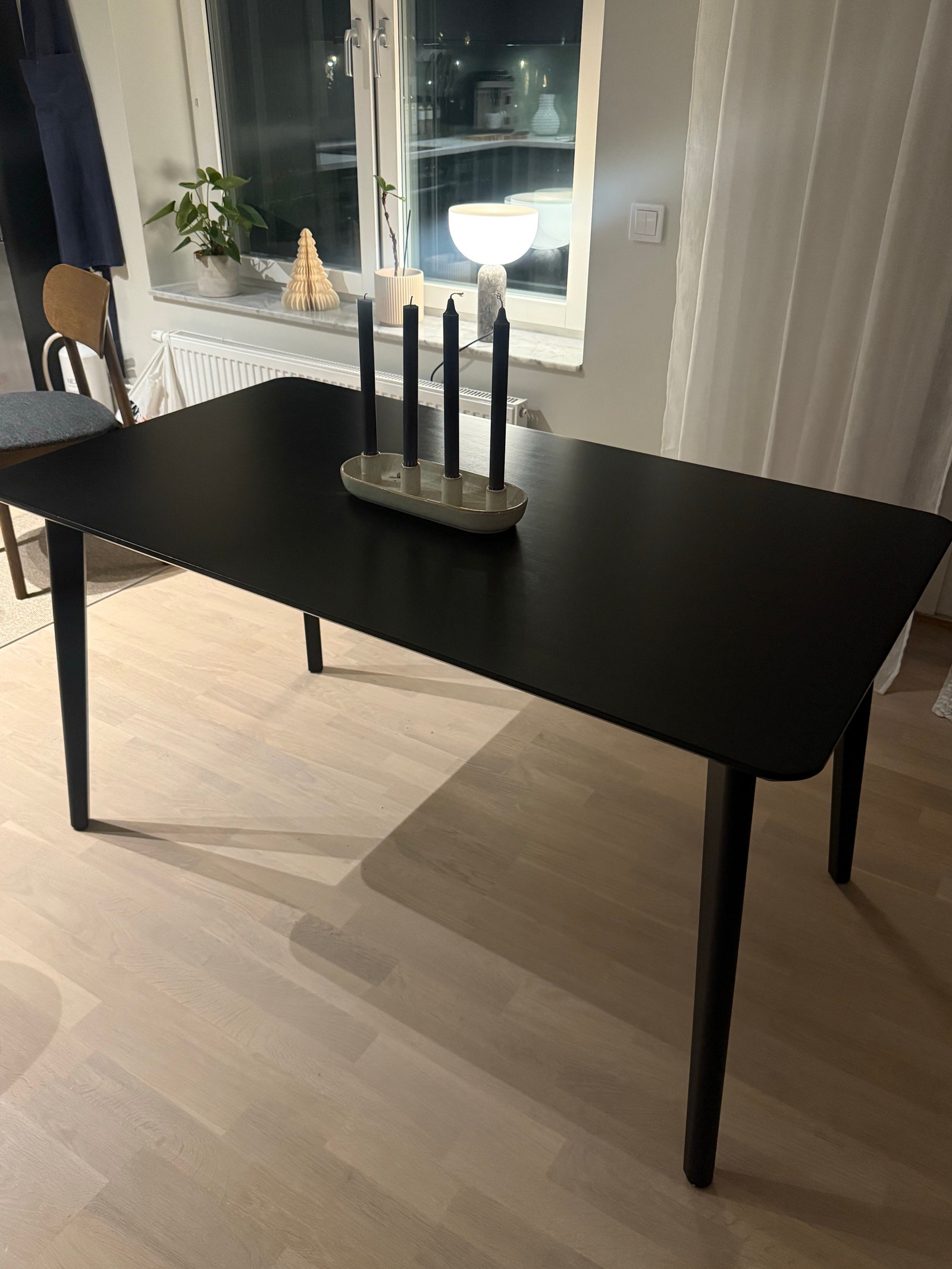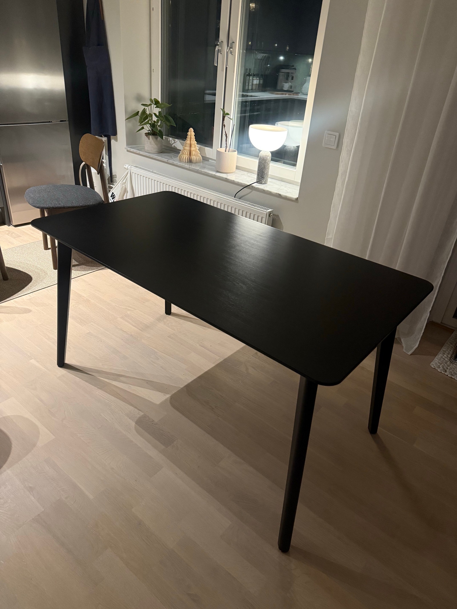 Begagnad matbord från IKEA modell LISABO i klassisk svart färg med måtten 140×78 cm, perfekt för köket eller matsalen. 🍽️