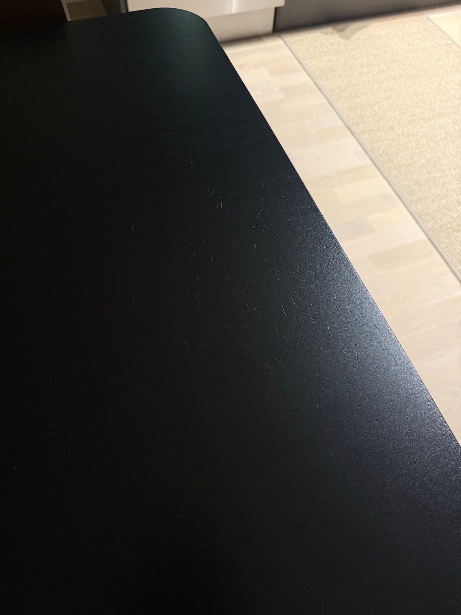 Det finns små märken på ena kortsidan, vilket är naturligt vid användning och påverkar inte funktionaliteten eller det övergripande intrycket av möbeln. 👌