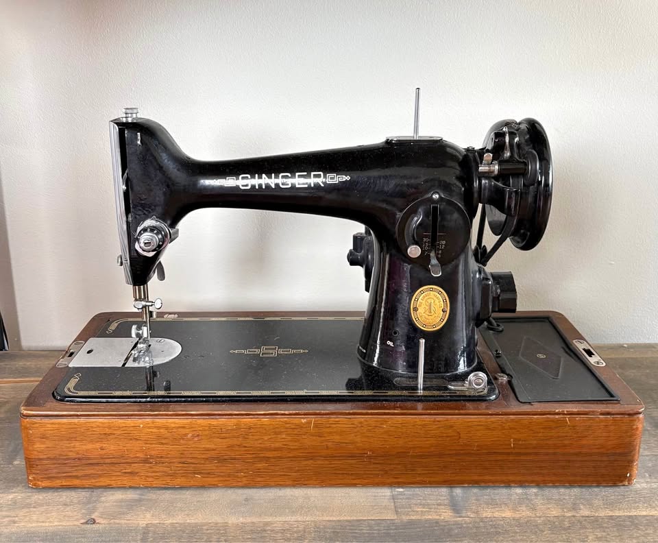 Maskinen visar på Singer-företagets oöverträffade rykte inom symaskinstillverkning och representerar en form av funktionell design som aldrig går ur tiden.