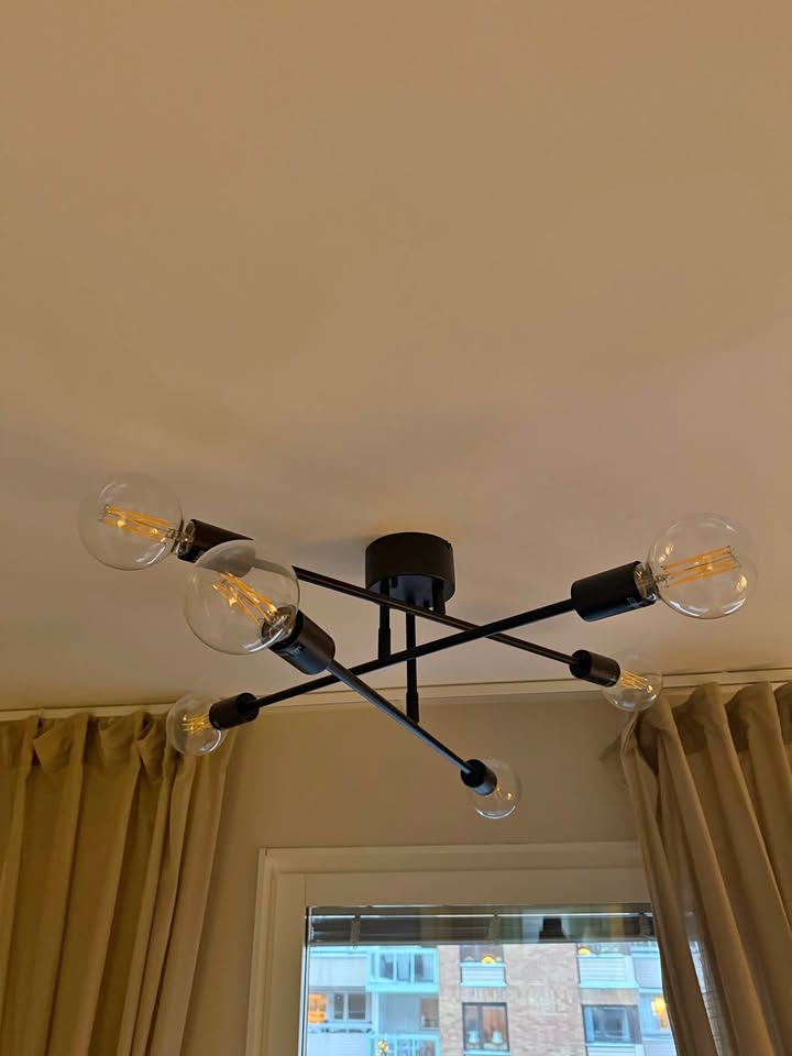Plafondlampa i svart – som ny, alla lampor